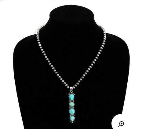 6mm Navajo Style Beads with Stone Pendant Necklace