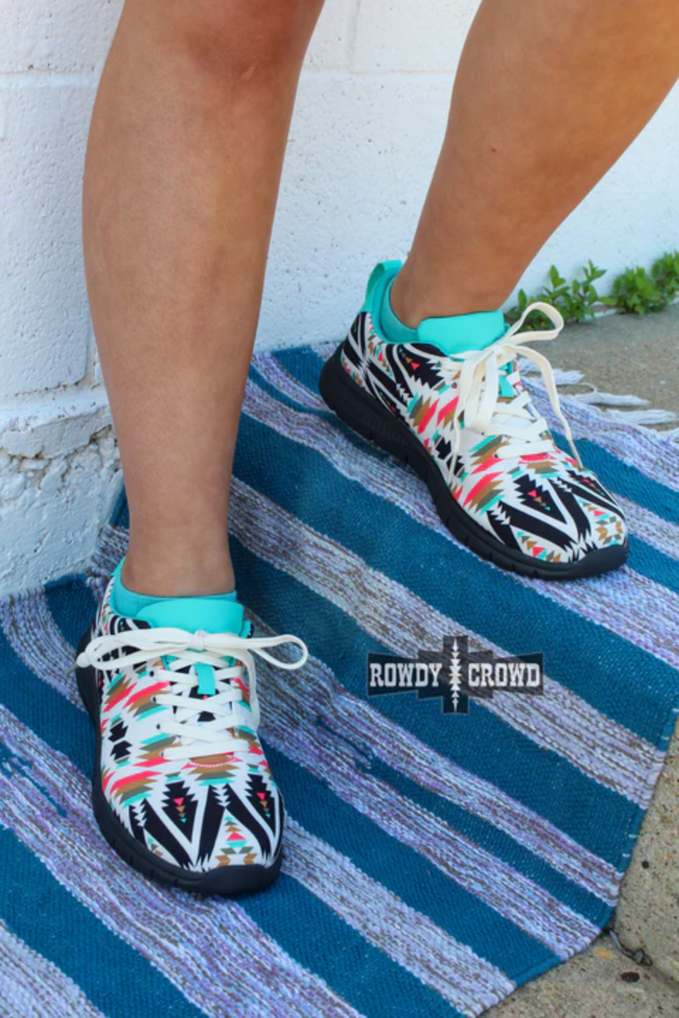The sneaker of your dreams - cute AND comfortable. The Atoka Aztec Sneaker has a bright, colorful aztec print with a black sole.