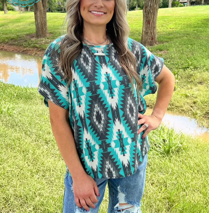 Introducing the Aztec Everest Top - where fashion meets versatility! Made with our beloved ribbed fabric and featuring our most popular Aztec design, this oversized top offers endless styling options. Dress it up or down - either way, you'll stand out in style!