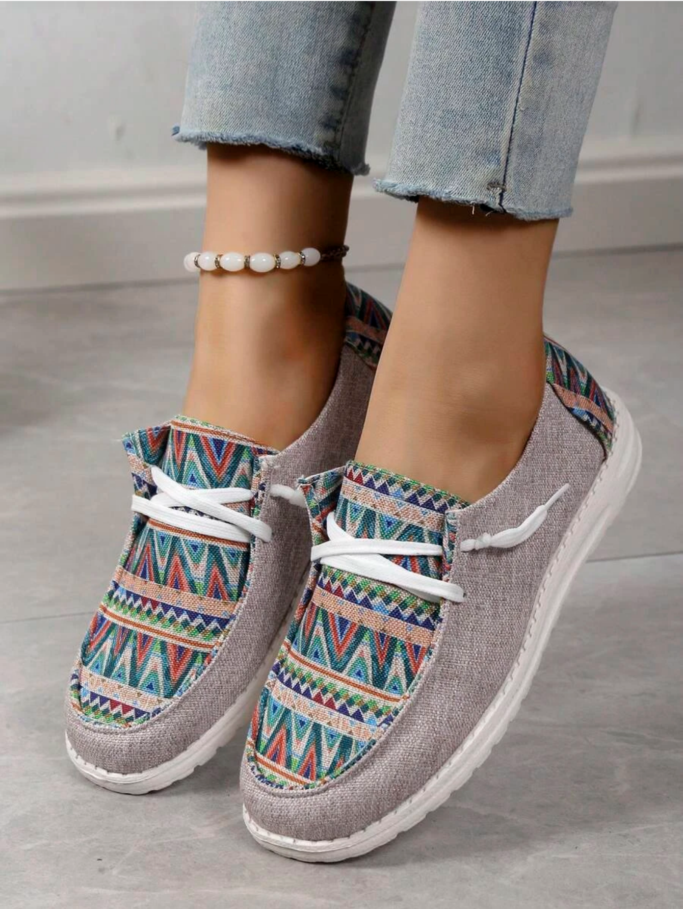 Aztec Print Gray Slip On Shoe