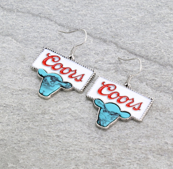 Epoxy Beer Logo with Cow Head Dangle Earrings