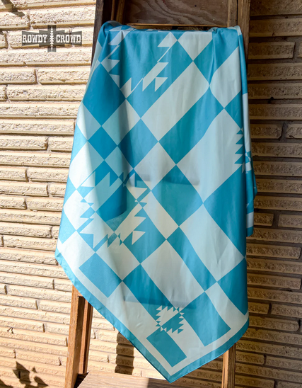 Embrace your wild side with our Feelin' Groovy Wild Rag! The teal and white pattern adds a pop of color, while the shiny material catches the eye. Versatile and cute, wear it as a top, in your hair, or on your bag to showcase your rowdy spirit. Make a statement with this unique accessory!