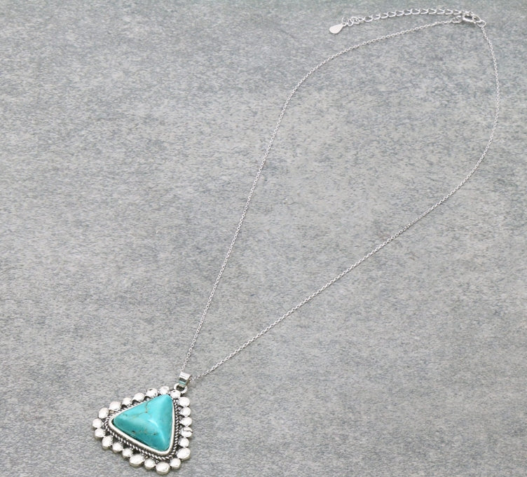 Sterling Silver Chain Necklace with Natural Stone Pendant