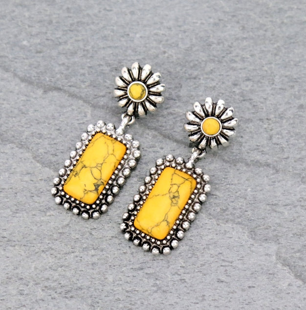 Add a touch of southwestern charm to your look with these Stone Concho Drop Stud Earrings. Featuring eye-catching stone accents and a playful concho design, they effortlessly brighten any outfit. Perfect for adding a little fun and flair to your everyday style!