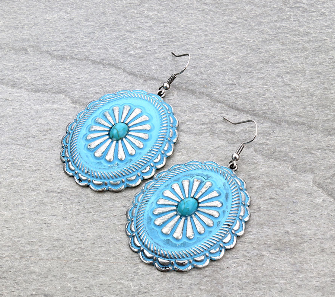 Vintage Washed Concho Dangle Earrings