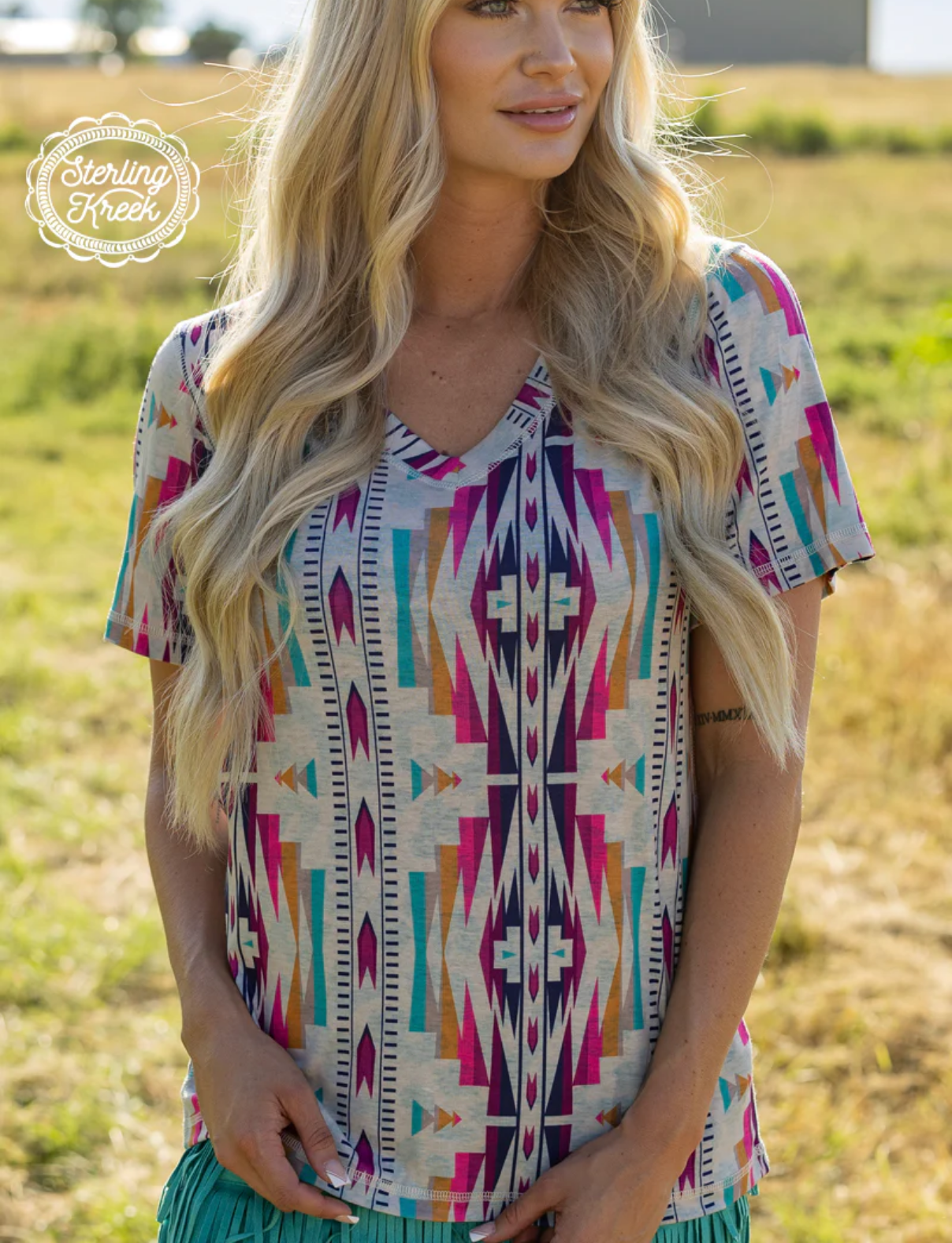 This top is the wild party animal you'll always be down for - double the fun with it's reversible v-neck, featuring a fierce turquoise leopard one side and a colorful aztec pattern on the other! We Go Together - like mac & cheese! 🧀