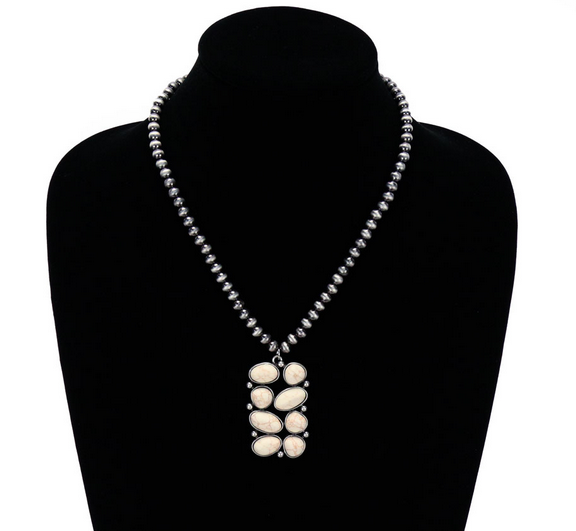 Western Geometric Stone Pendant with Navajo Style Pearl Necklace