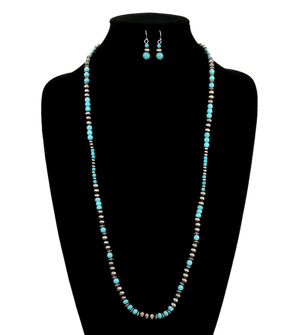 Western Navajo Style Pearl and Bead Necklace Set