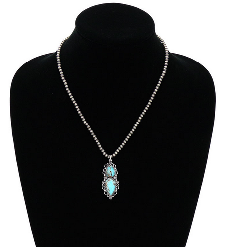 Western Navajo Style Pearl with Semi Stone Pendant Necklace