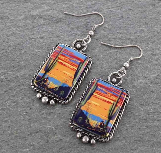 Western Portrait Fish Hook Earrings