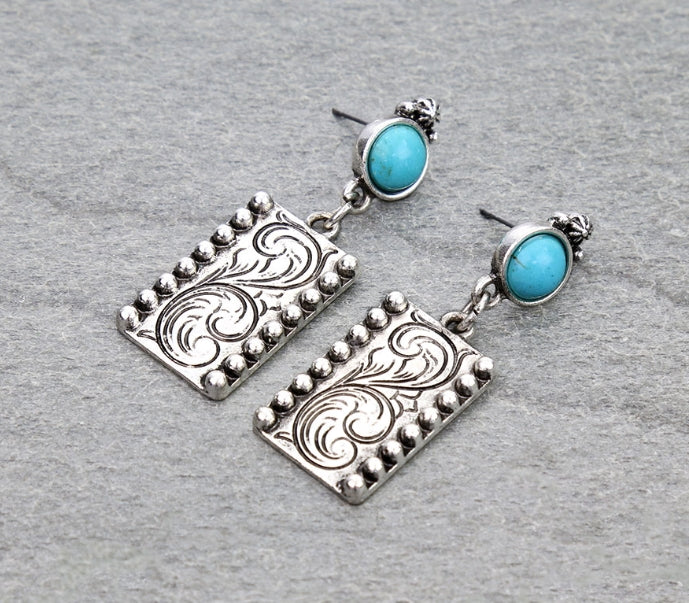 Western Rectangle Engraved Stud Earrings