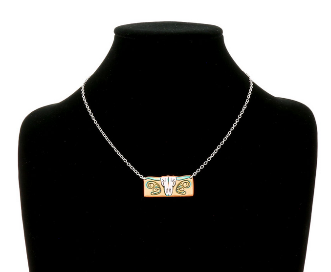 Western Steer Skull Tooled Leather Bar Necklace